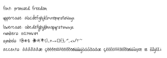 Promised Freedom to font, który emanuje radosnym i przyjaznym charakterem, idealny do projektów wymagających osobistego wyrazu. Jego smukłe, nieco nieregularne linie nadają mu naturalny, ręcznie rysowany wygląd, co czyni go doskonałym wyborem do projektów takich jak zaproszenia, kartki okolicznościowe czy opakowania butikowe. Dzięki eleganckim krzywym i subtelnym różnicom w wysokości liter, font zapewnia czytelność w różnych rozmiarach, co czyni go wszechstronnym narzędziem w rękach projektantów.